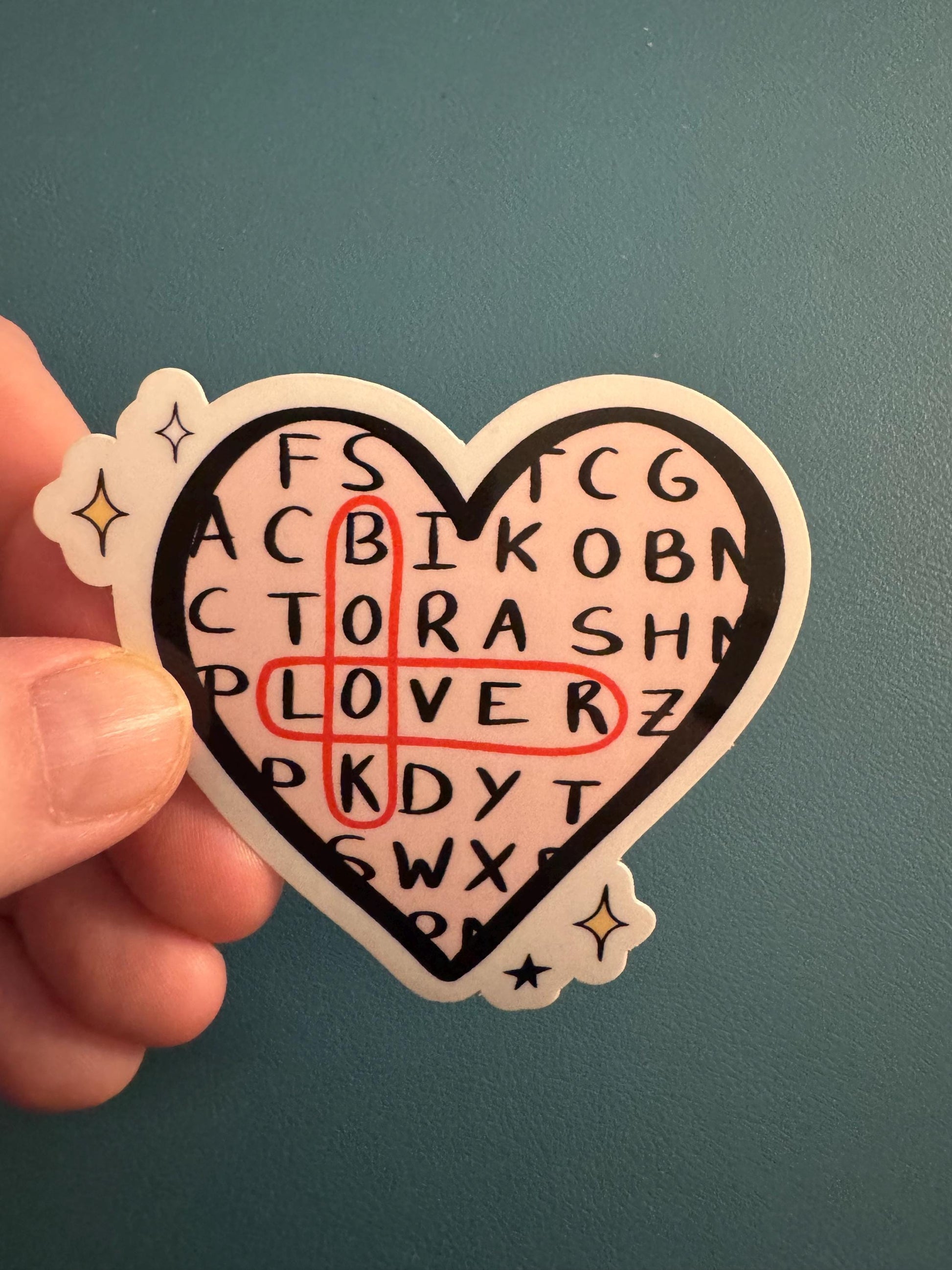 Book Lover Waterproof Sticker, Crossword Puzzle Sticker, Heart Shaped, Bookish Babe, Romance Reader