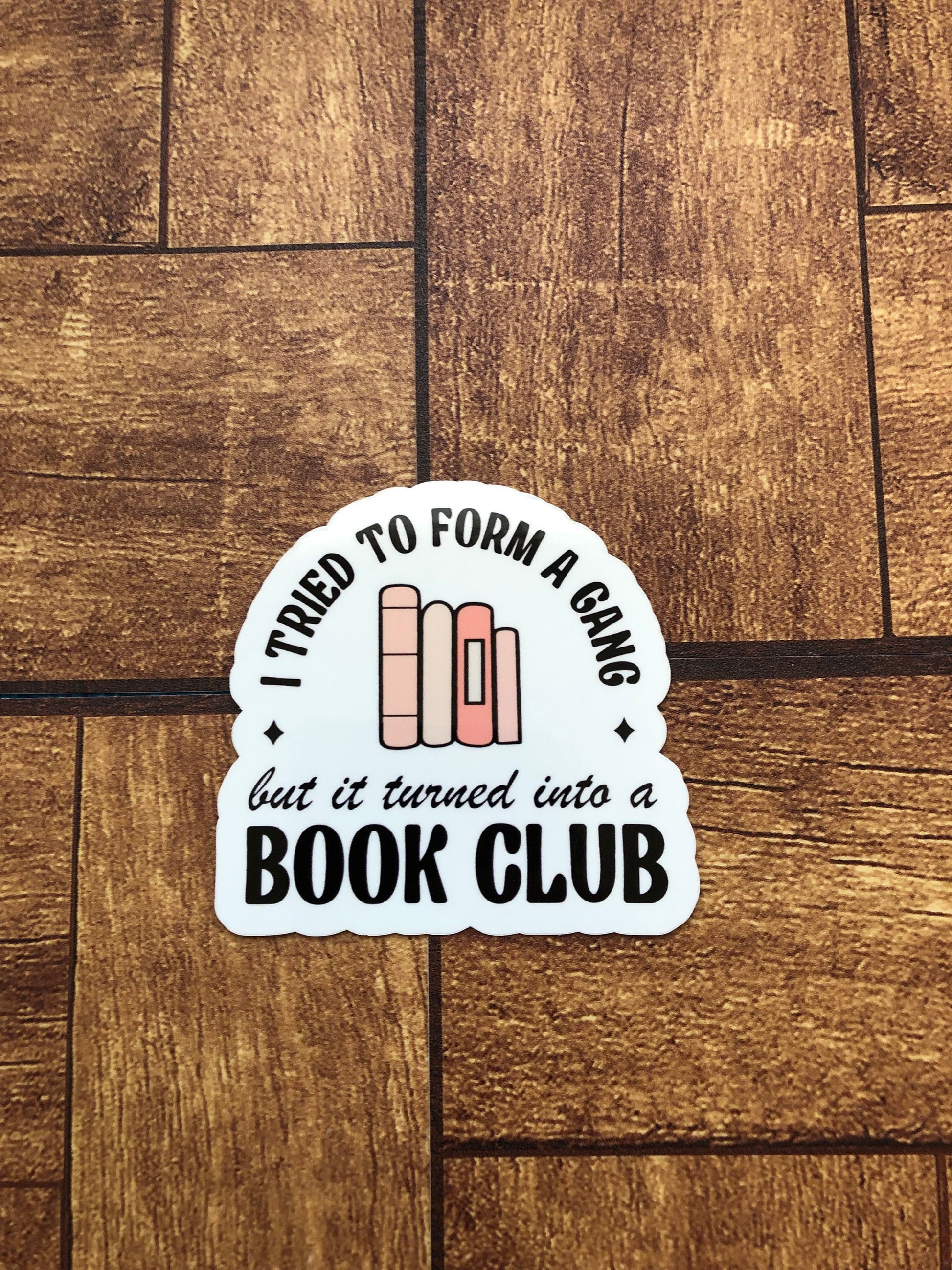 Calling all my book worms and book lovers have I got the sticker for you. This sticker is the epitome of book humor. Can you imagine trying to form a gang, and ending up forming a book club instead? I mean come on we all know that a book club would be better anyway.
