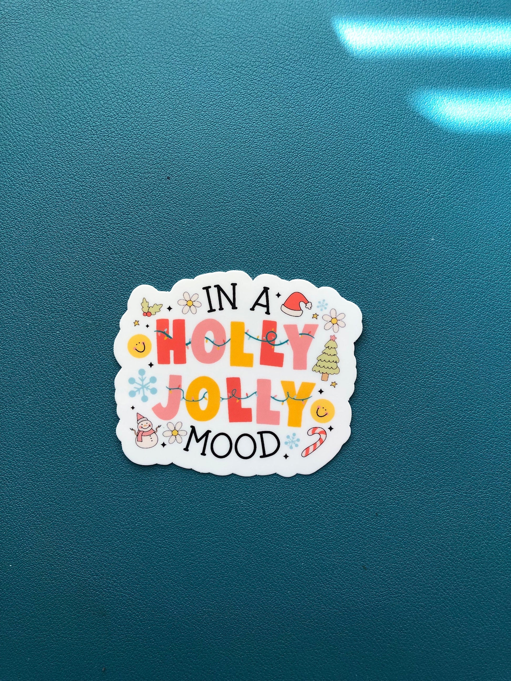 In A Holly Jolly Mood Waterproof Sticker, Christmas Sticker, Christmas Tree Sticker, Candy Canes, Snowmen, Seasons Greetings, Stocking Gift