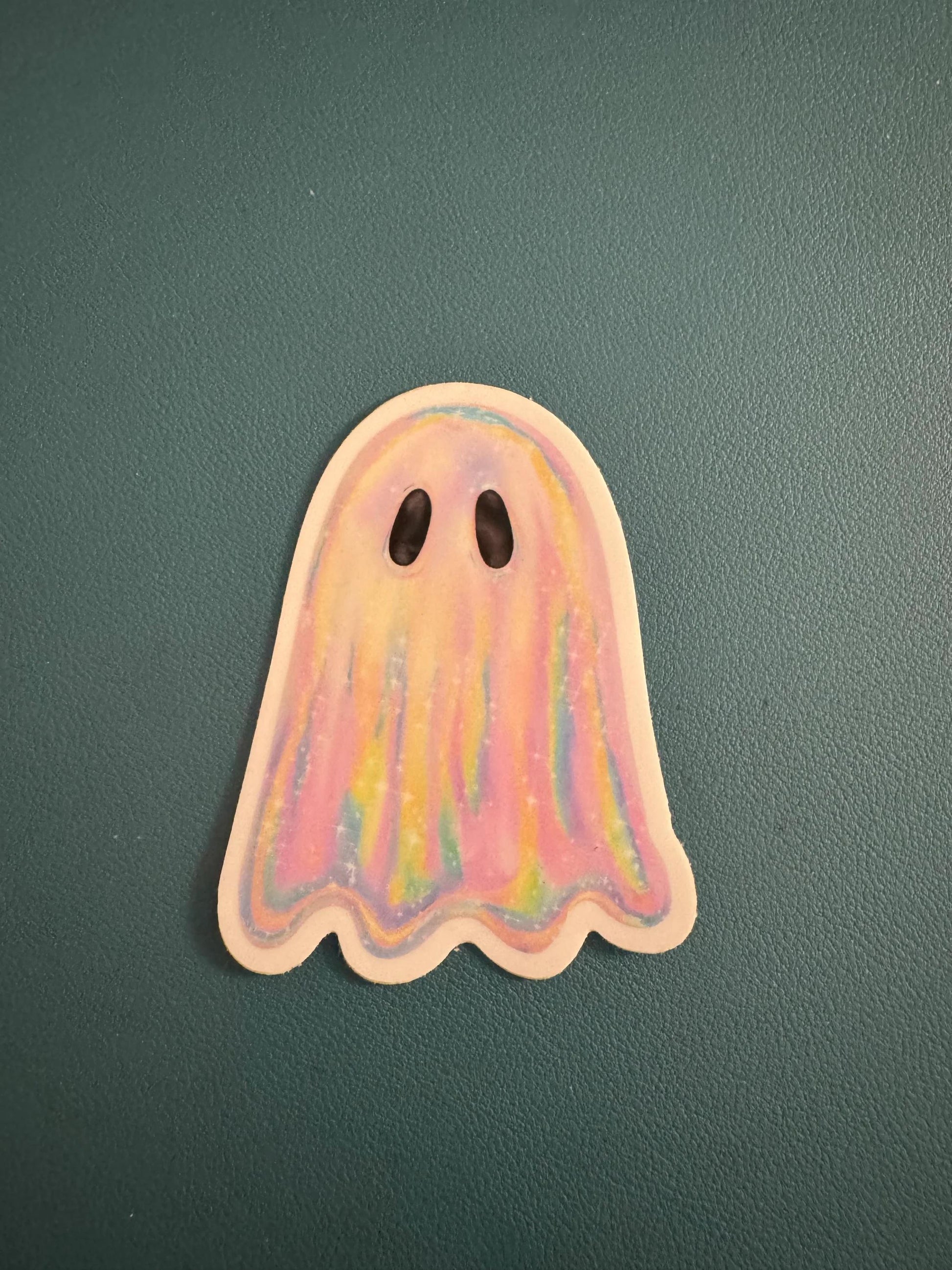 Iridescent Rainbow Ghost Waterproof Sticker, Spooky Season, Vinyl Water Bottle Sticker