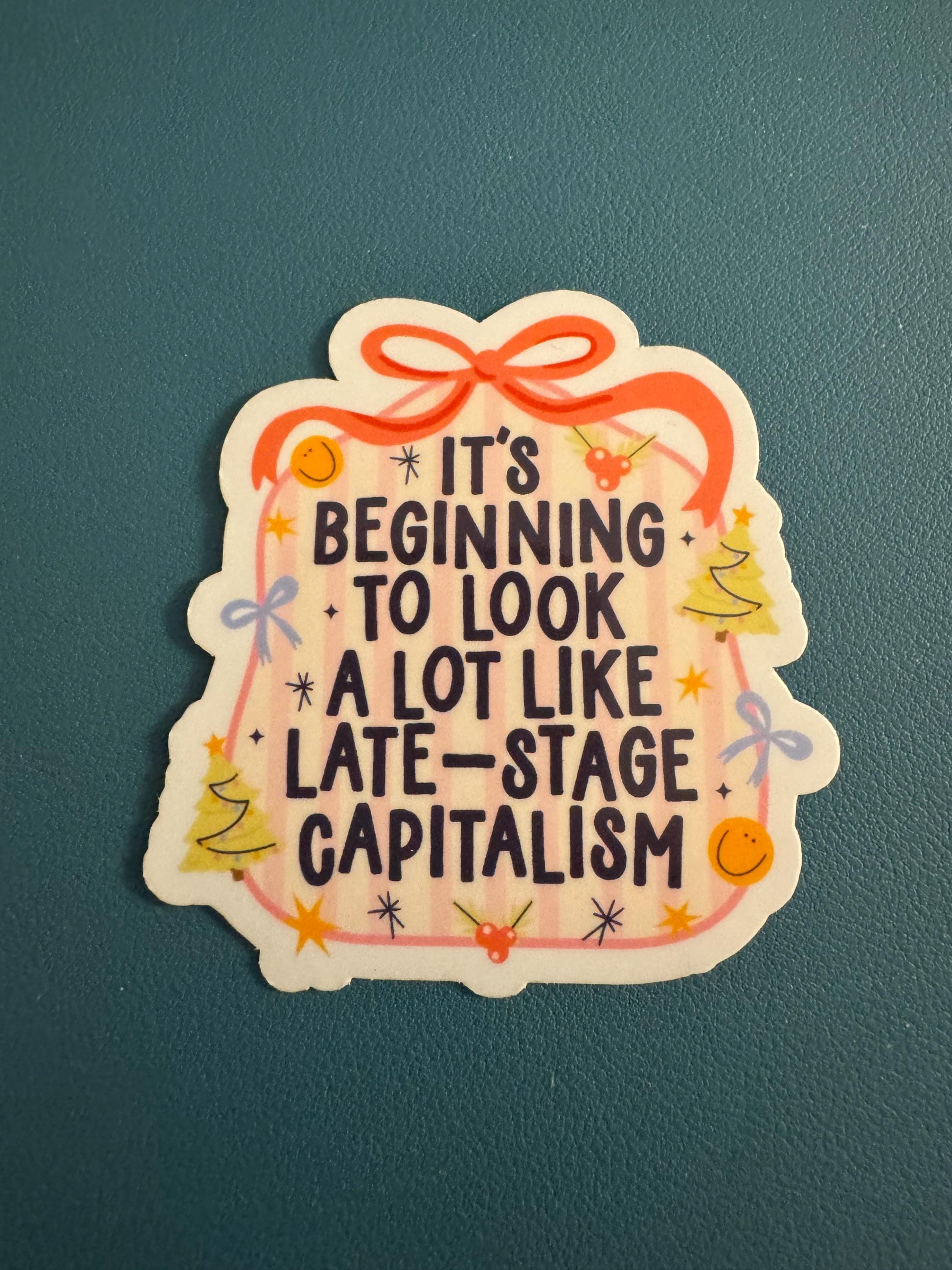 It's Beginning To Look a lot Like Late Stage Capitalism Vinyl Sticker, Economics, Holiday Humor, Waterproof Sticker