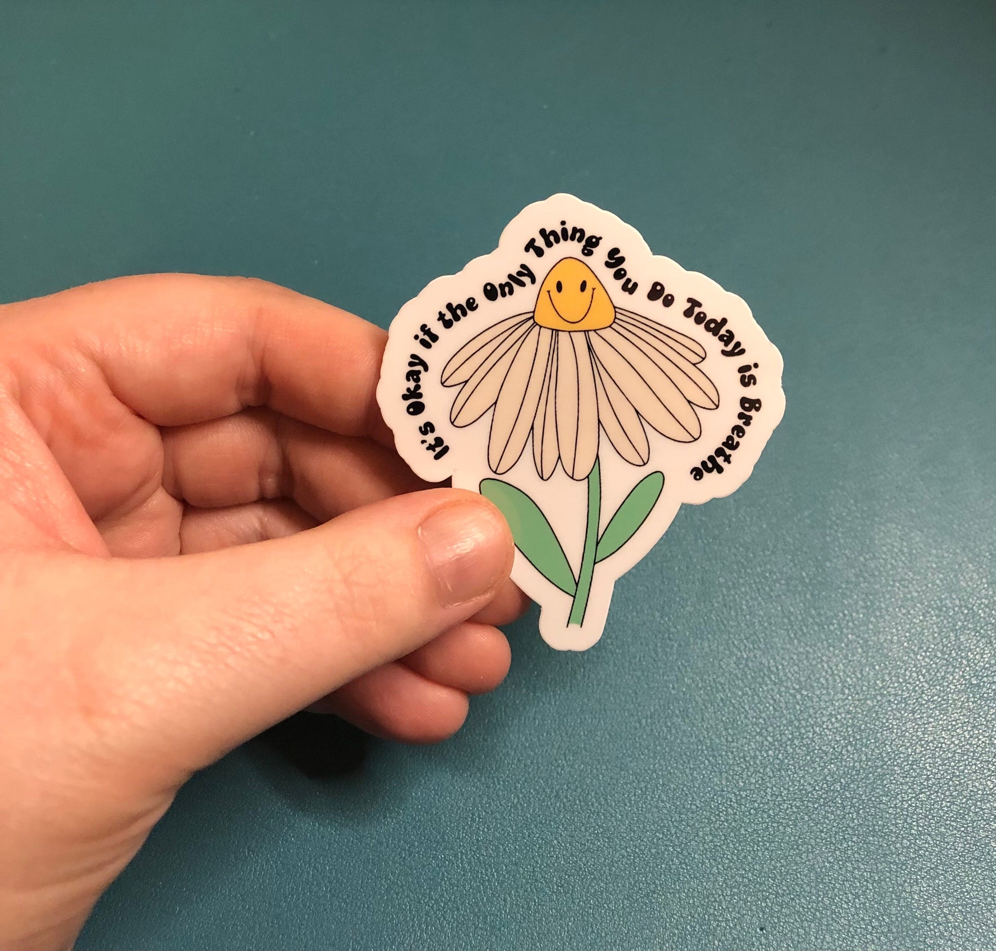 It's Okay If The Only Thing You Do Today Is Breathe Waterproof Sticker, Mental Health Sticker, Self Love Club, Daisy Sticker, Floral Sticker