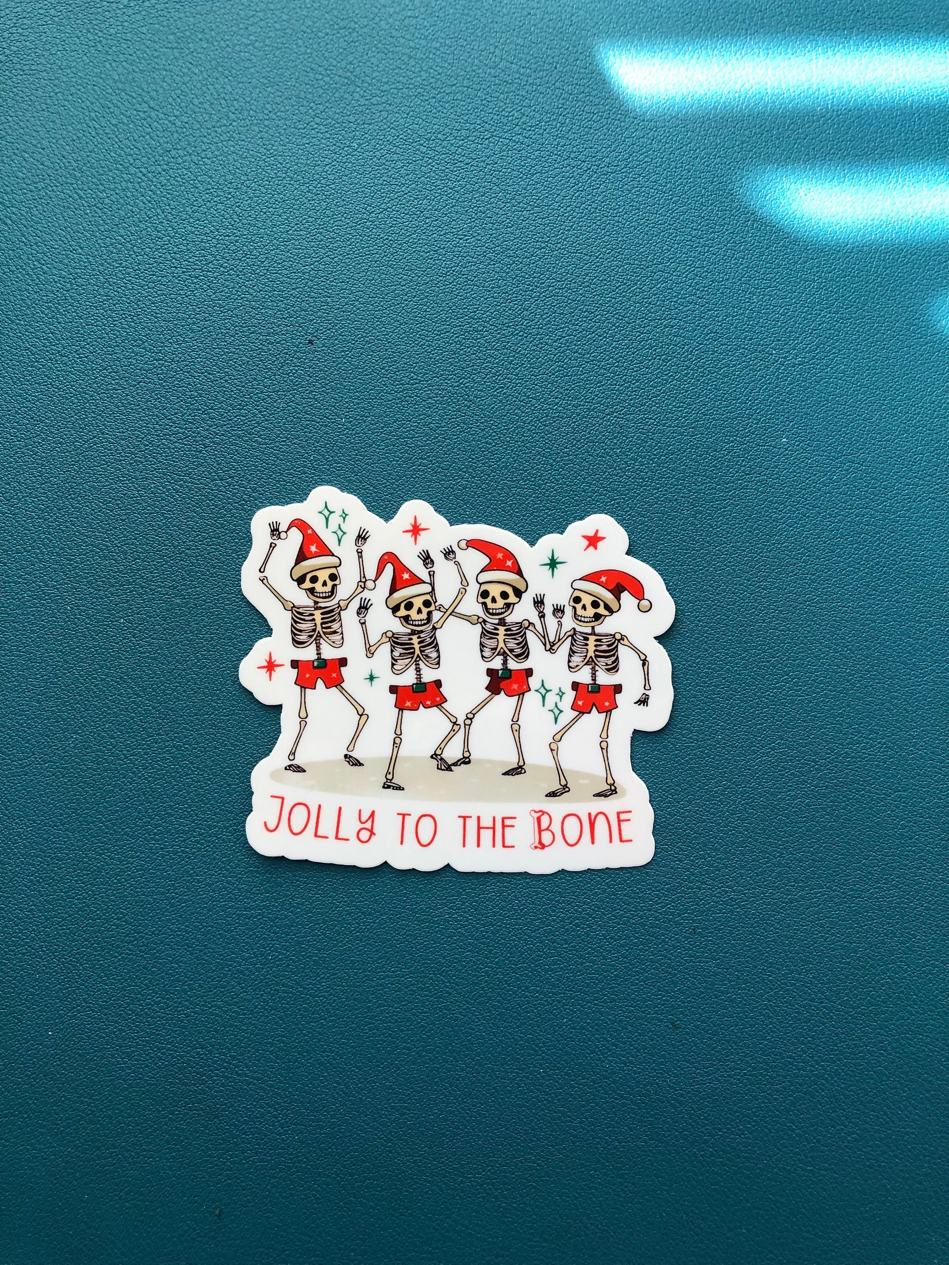Jolly To The Bone Waterproof Sticker, Dancing Skeleton Sticker, Christmas Skeleton Sticker, Holly Jolly, Seasons Greetings, Stocking Stuffer