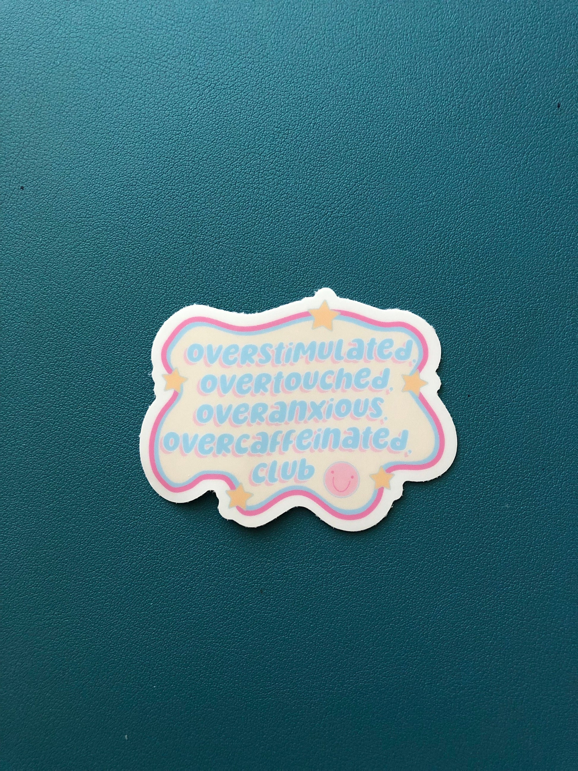 Overstimulated, Overtouched, Overanxious, Overcaffeinated Club Sticker, Overstimulated Moms Club, Burn Out Sticker, Just Done With It