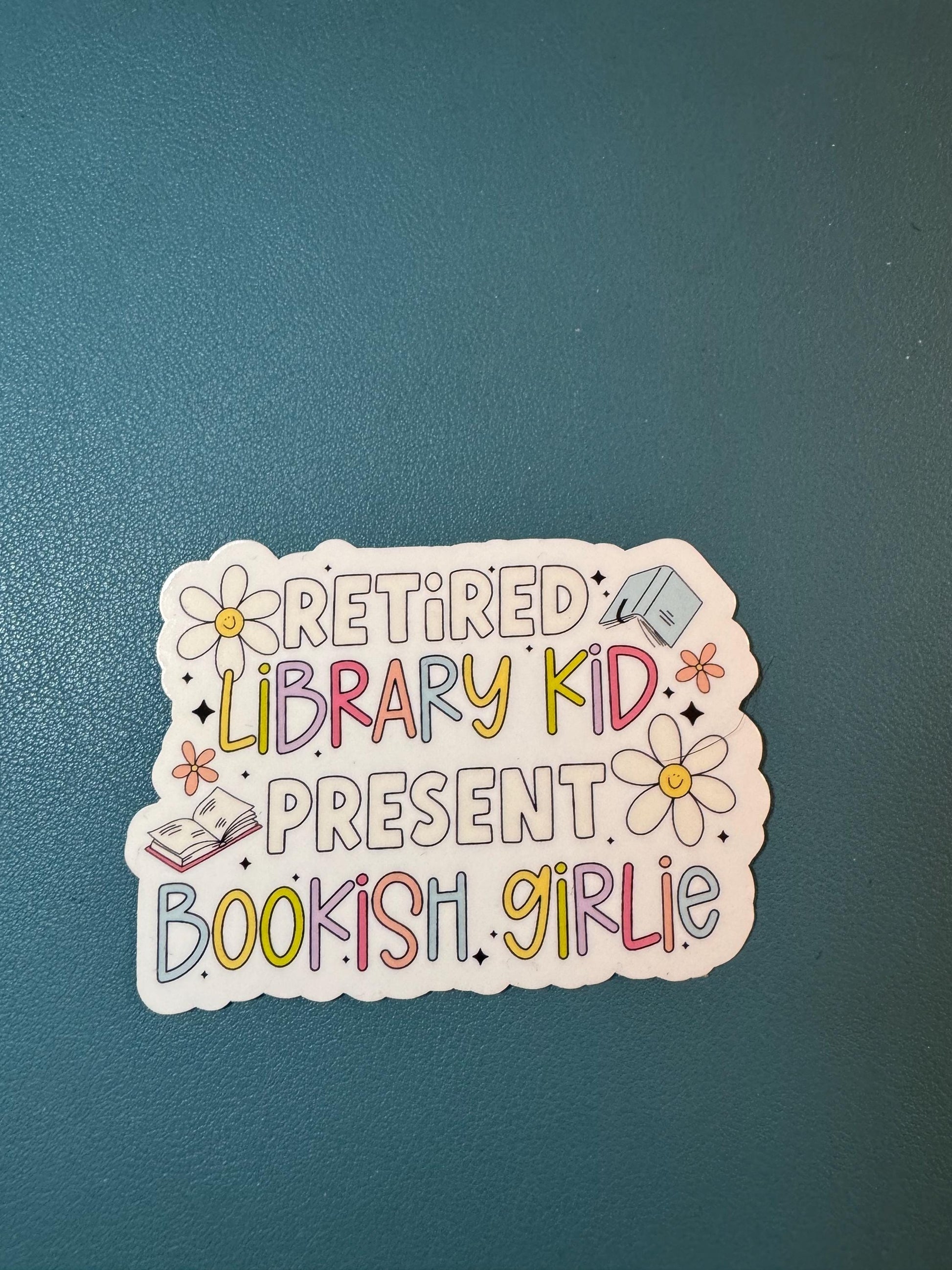 Retired Library Kid Present Bookish Girlie Sticker, Book Lover, Romantasy Reader, Booktok, Bookstagram, Gift for Reader, Library Lover