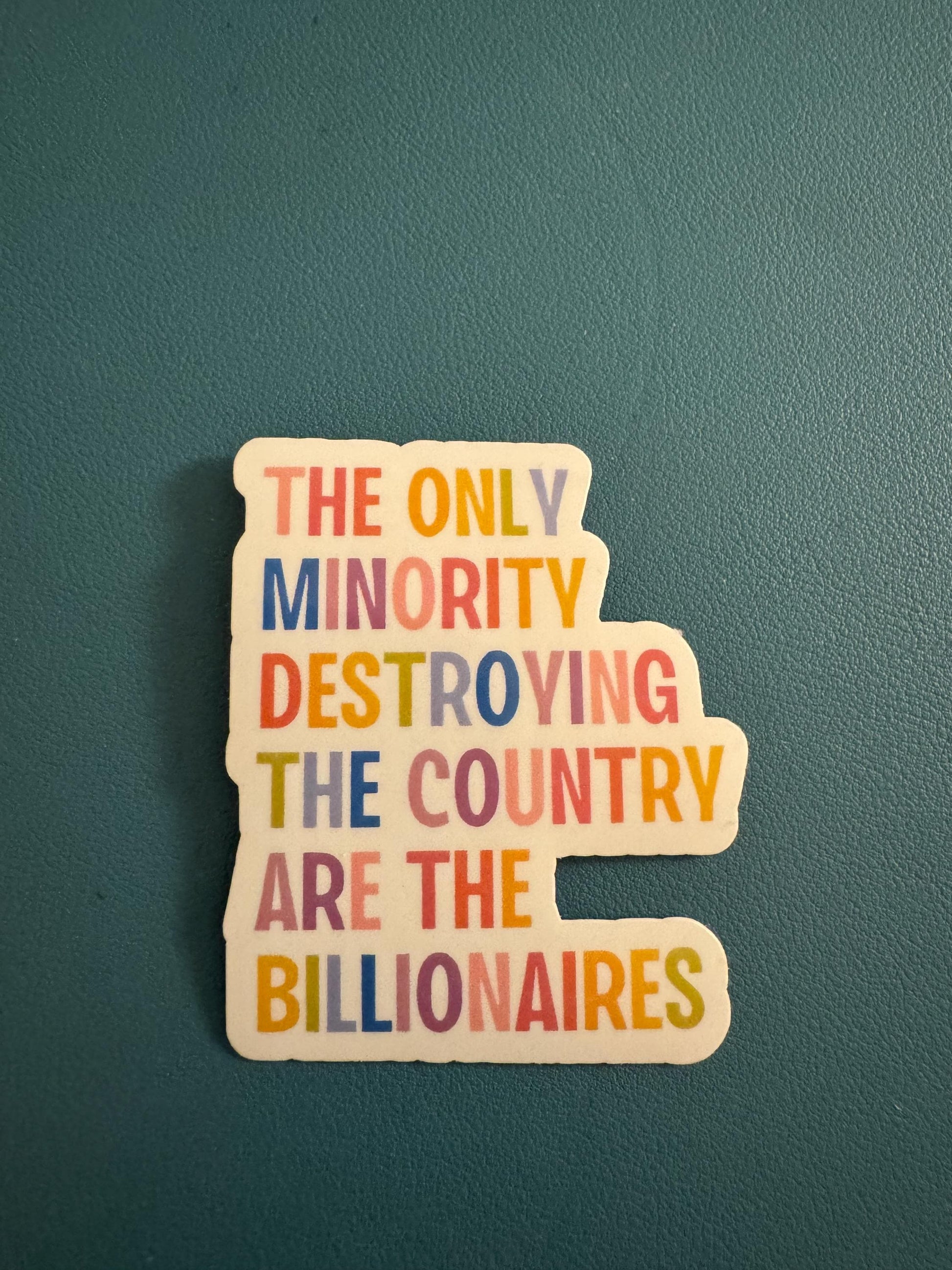 The Only Minority Destroying The Country Are The Billionaires Sticker, Anti-Capitalism, Support The Middle Class, Eat The Rich, End Poverty
