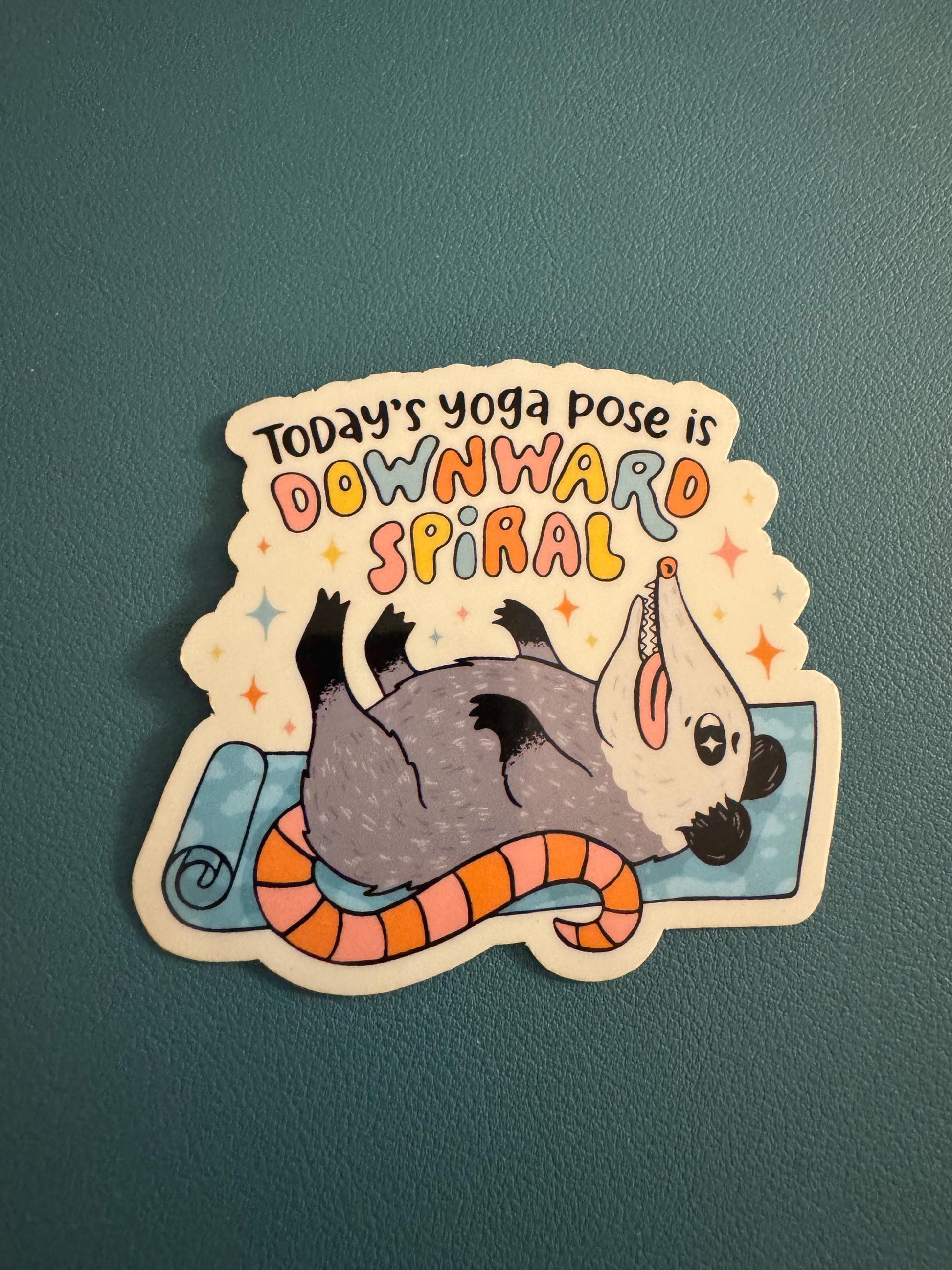 Today's Yoga Pose Is Downward Spiral Waterproof Sticker, Opossum Sticker, Yoga, Sarcasm, Vinyl Sticker
