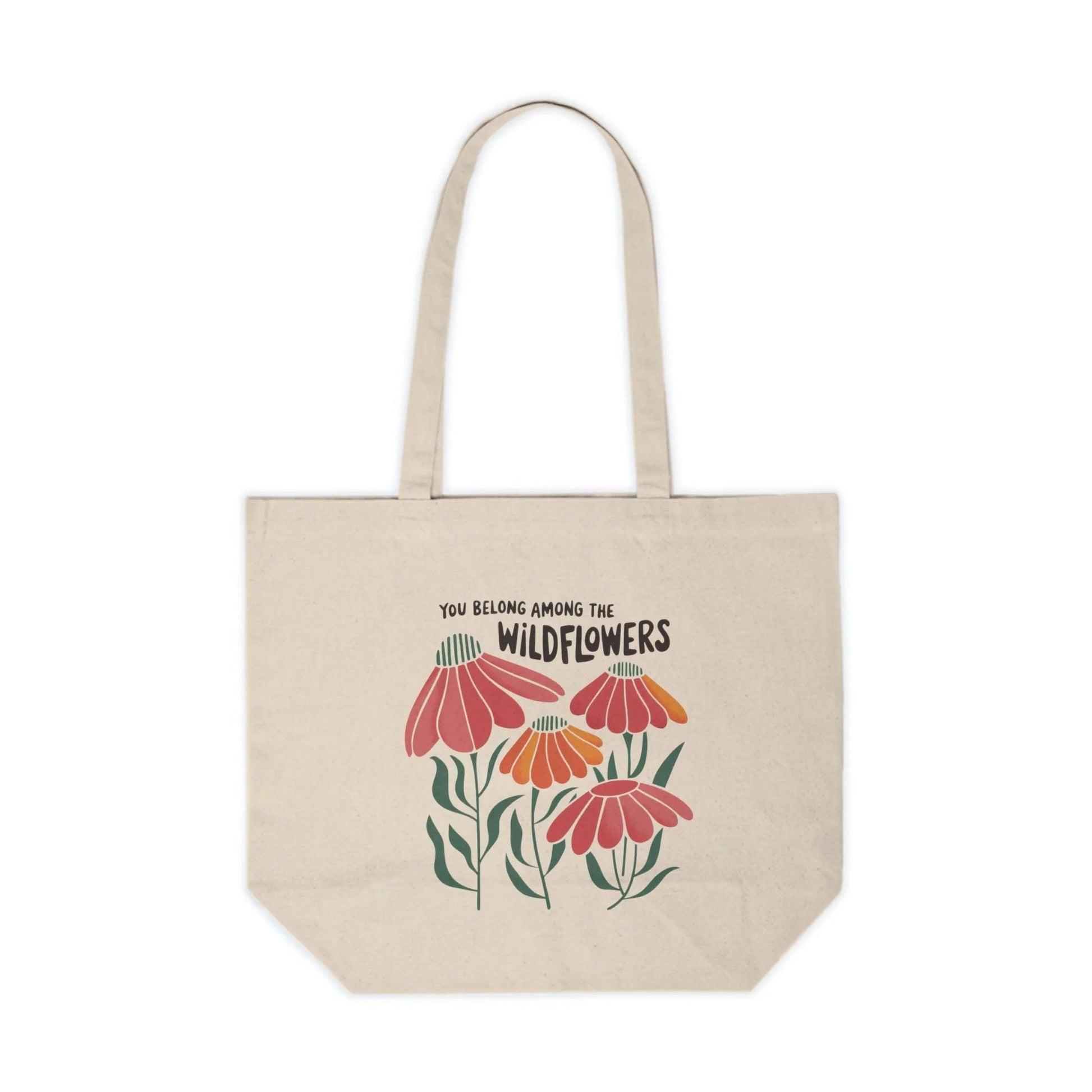 You Belong Among The Wildflowers Tote Bag, Gift for Mom, Gift for Best Friend, Floral Themed Tote Bag, Canvas Tote, Reusable Tote