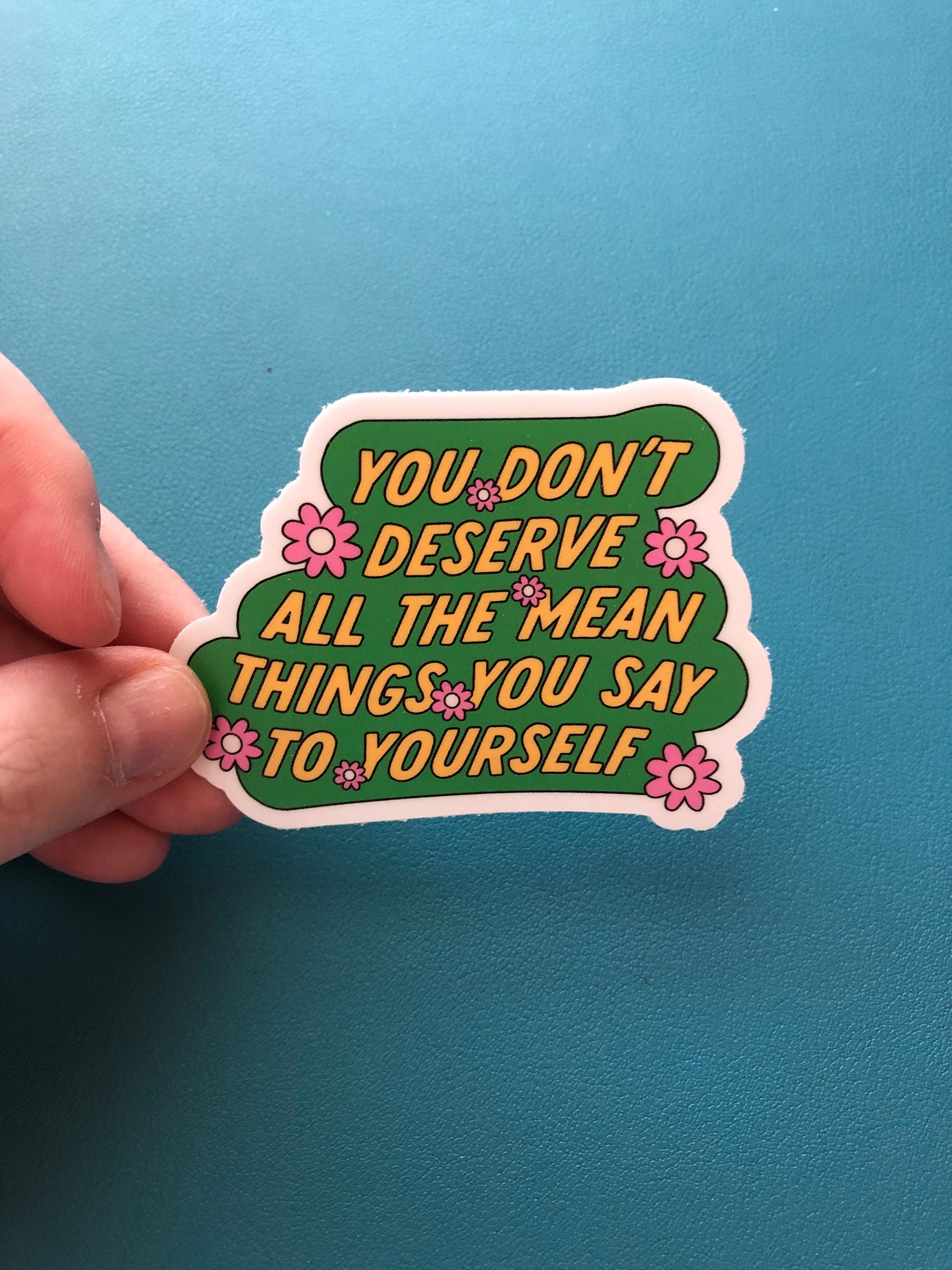 You Don't Deserve All The Mean Things You Say To Yourself Waterproof Sticker, Self Love Sticker, Mental Health, Self Care Decal, Trendy Gift